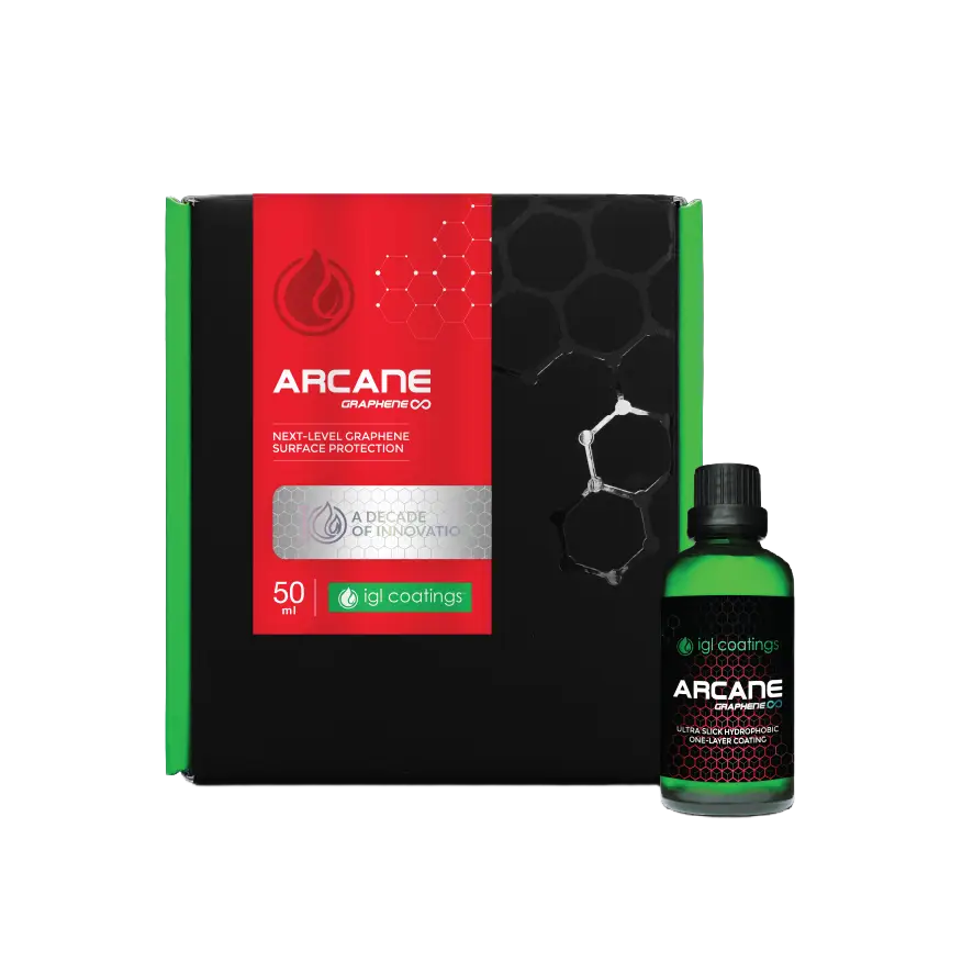 Arcane uses new graphene tech for stronger, longer protection up to 4 years. Water rolls off fast. It fights sun, dirt, and daily wear while giving a mirror-like shine. It can be applied indoors or outdoors. Made with low-emission graphene, it’s also eco-minded.